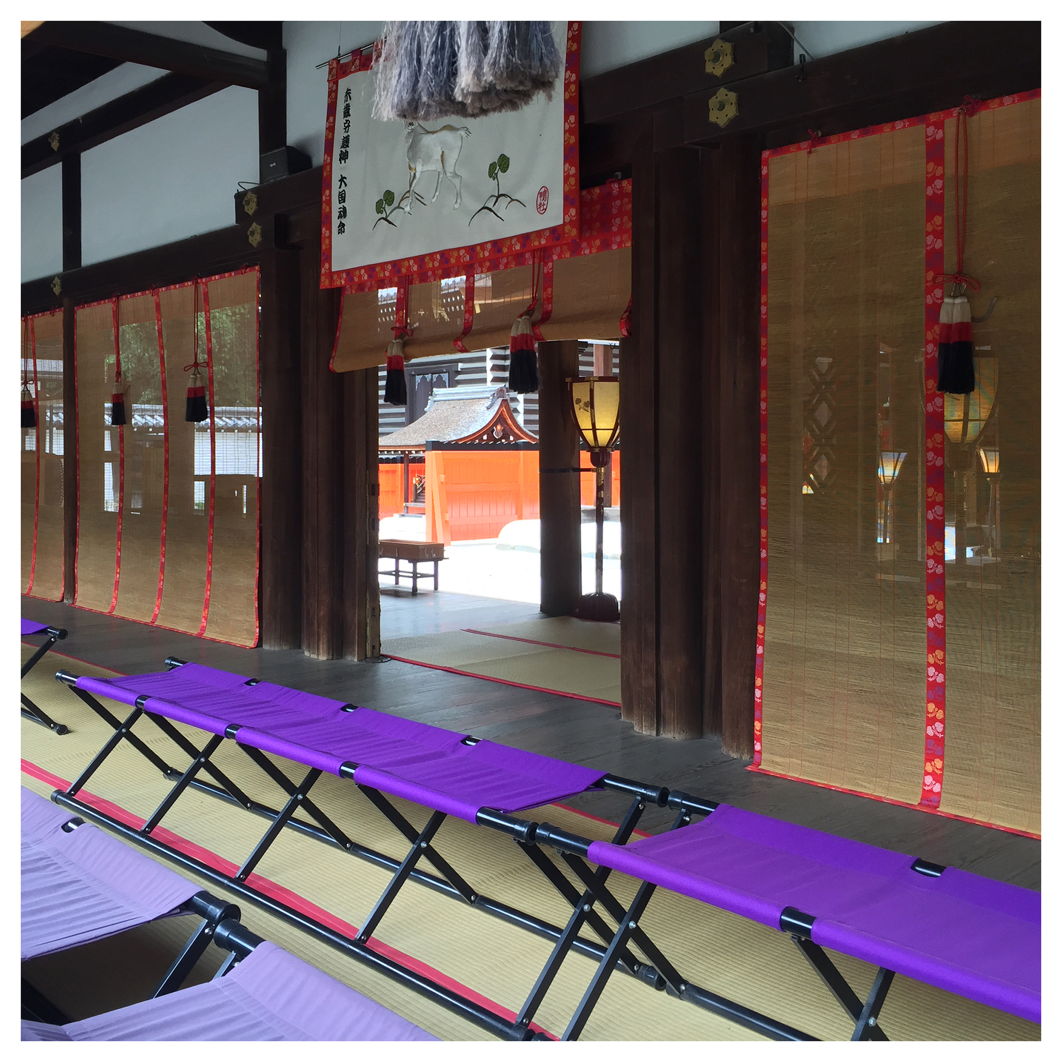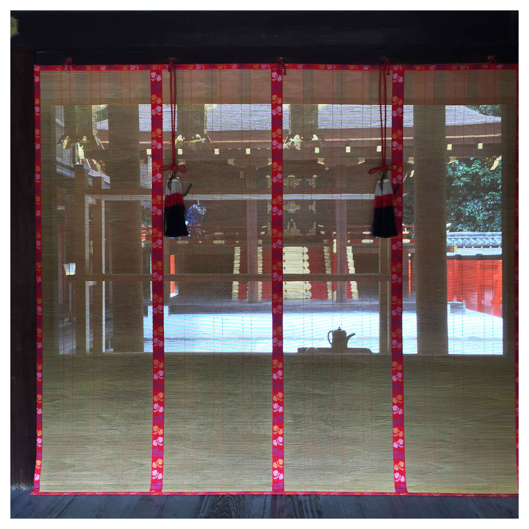 Participants sit near one another and take turns smelling incense from a censer as they pass it around the group. Participants comment on and make observations about the incense, and play games to guess the incense material. Genjikō is one such game, in which participants are to determine which of five prepared censers contain different scents, and which contain the same scent. Players’ determinations (and the actual answers) are recorded using genji-mon linear patterns, the elements of which allude to chapters in the Tale of Genji.